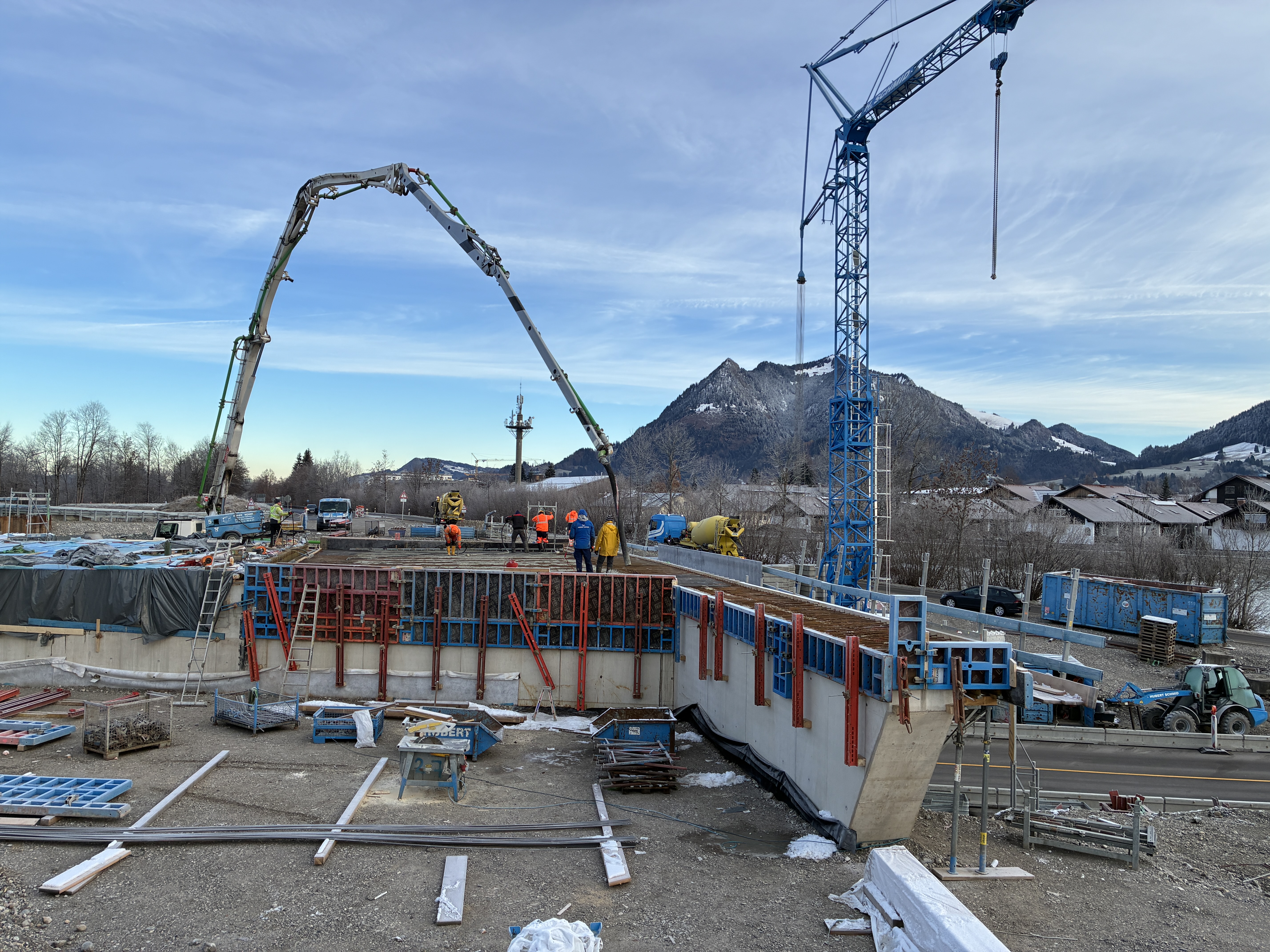 Beim Bau der zweiten Brücke über die Iller bei Sigishofen laufen die Restarbeiten vor der am 03. Dezember 2025 geplanten Betonage des Überbaus. Fast genau ein Jahr nach der Betonage des ersten Überbaus am 12. Dezember 2024 fließen dann erneut ca. 800m³ Beton in die aufwändig hergestellte Schalung.